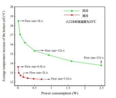 相同功耗下液冷電池包的最高溫度比風(fēng)冷低3-5℃